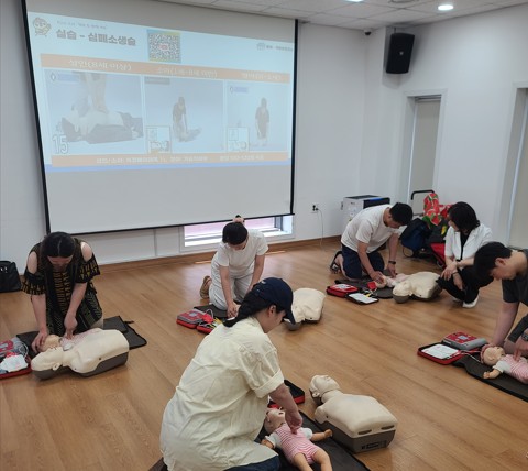 주요 교육 내용은 ▲영유아 이물질 기도 폐쇄 처치(하임리히법), ▲영아 및 소아 심폐소생술(CPR), ▲성인 심폐소생술(CPR)로 구성됐다. 이론 강의와 실습을 병행하는 체험형 방식으로 진행돼, 참여자들은 인형을 활용해 손 위치와 압박 강도 등 실제 응급처치에 필요한 기술을 직접 익혔다.