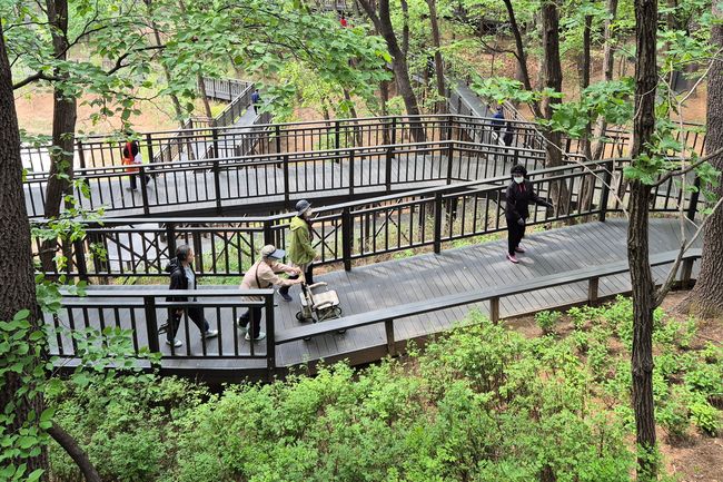 노원구, 초안산 무장애숲길 개통…보행약자도 안전하게 숲길 산책