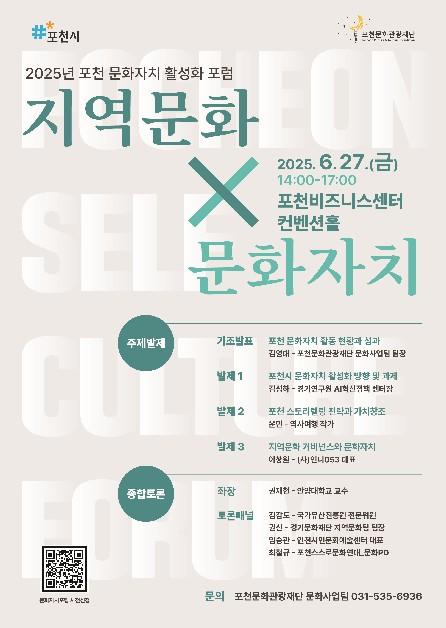 재단법인 포천문화관광재단(대표이사 이중효)은 오는 27일 오후 2시 포천 비즈니스센터 컨벤션홀에서 포천 문화자치 활성화를 위한 토론회(포럼)인 `지역문화X문화자치`를 개최한다.